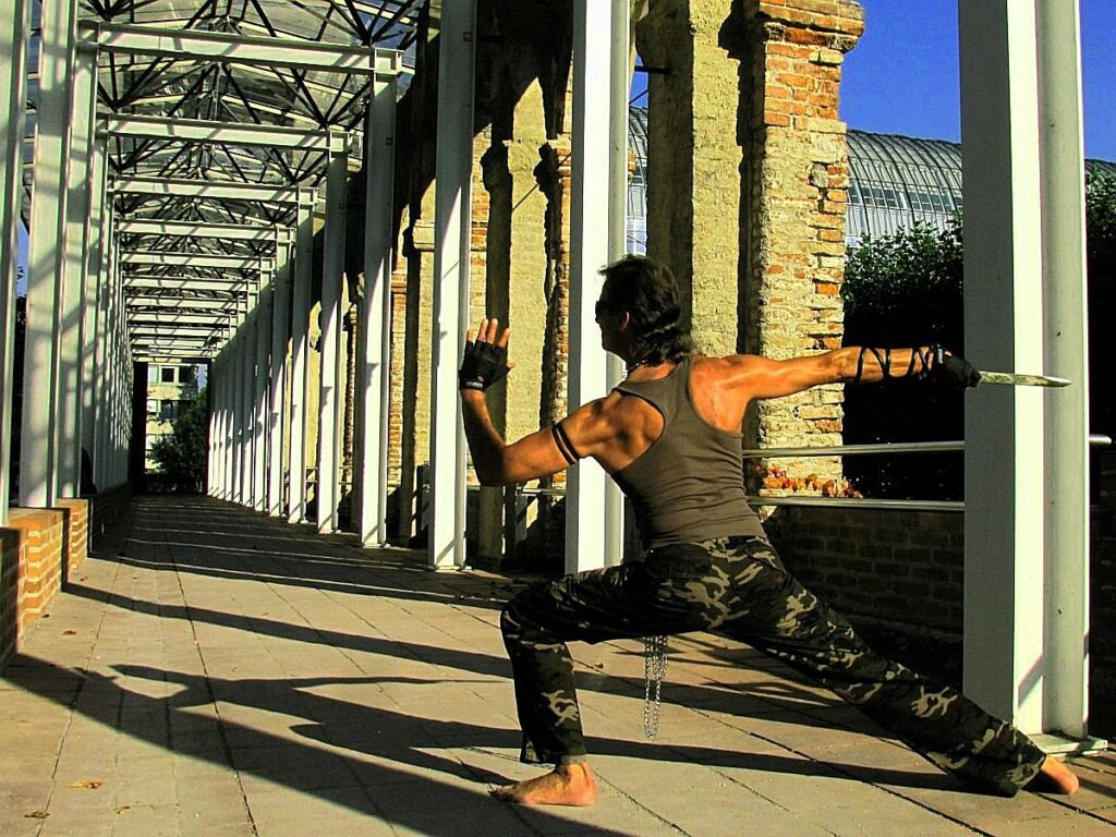 Die Drehungen sollen zeigen , dass eine Abwehr aus unterschiedlichen Richtungen erfolgen kann. Dadurch wurde meine Neue Langform mit Dolch interessanter und wesentlich beweglicher