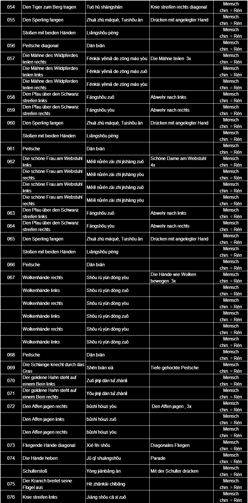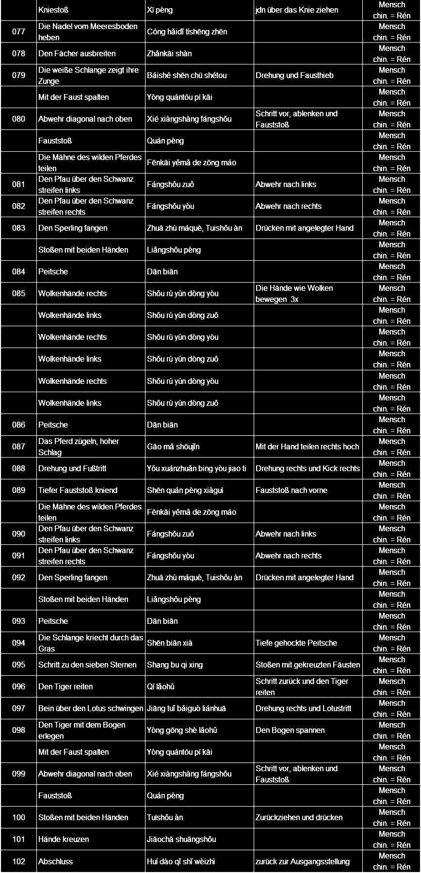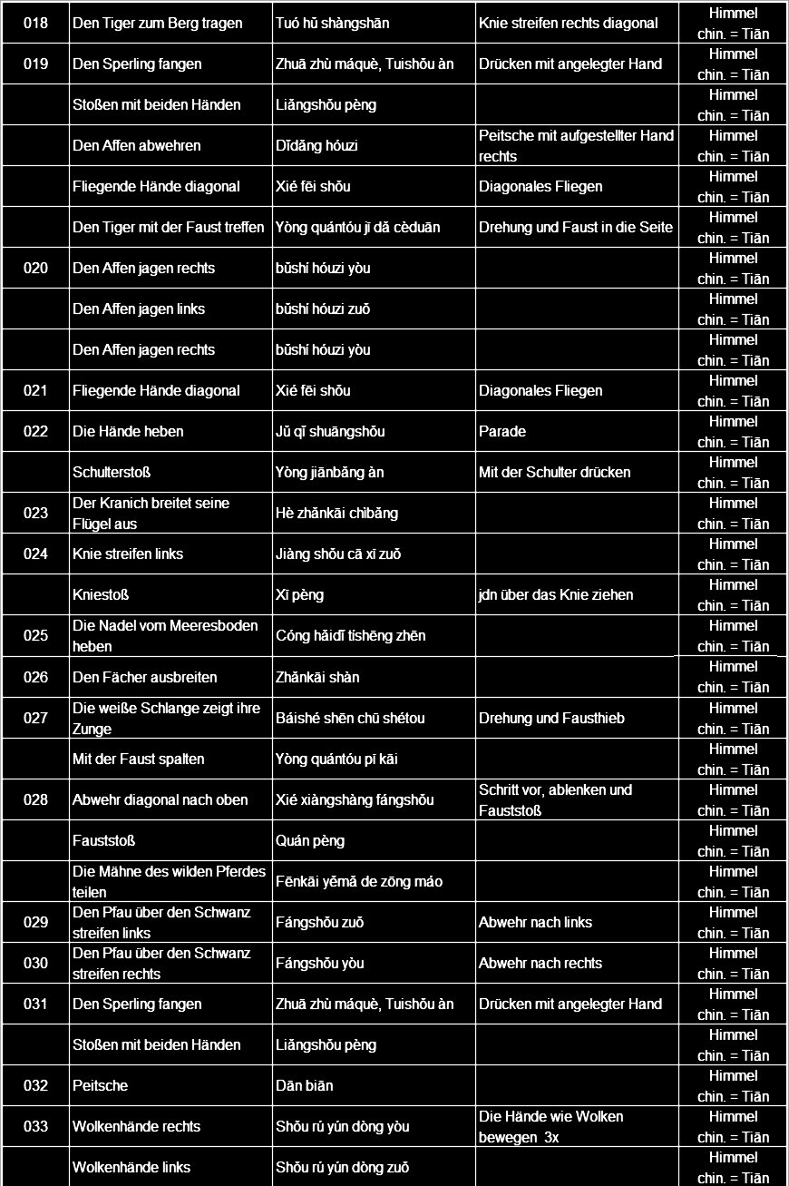 In  der   Competition-Langform  im  Yang-Stil , beispielsweise , werden  88  Figuren   angegeben.